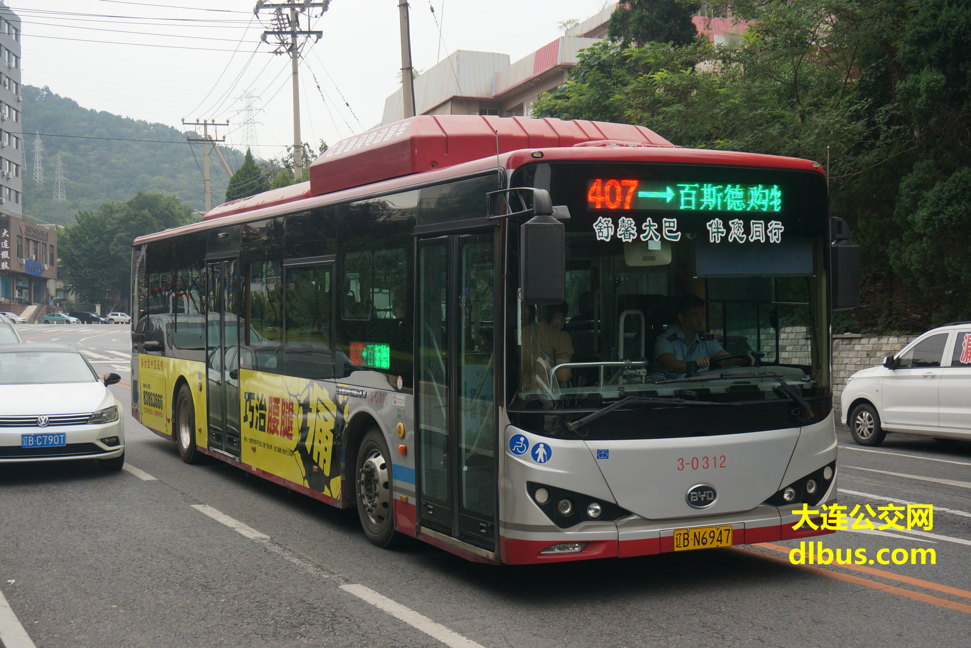 百斯德购物广场—天洋路—天河路—千山路—金三角—金三角市场—大纺—亿达世纪城—春柳河—春光街—工人村—香炉礁—五一广场—长春路—高尔基路—大连交通技师学院—北石道街—石葵路西—葵英街—仁平街—大连市社会福利院—植物园—望海街—团市委—儿童公园西—安阳街—鲁迅路